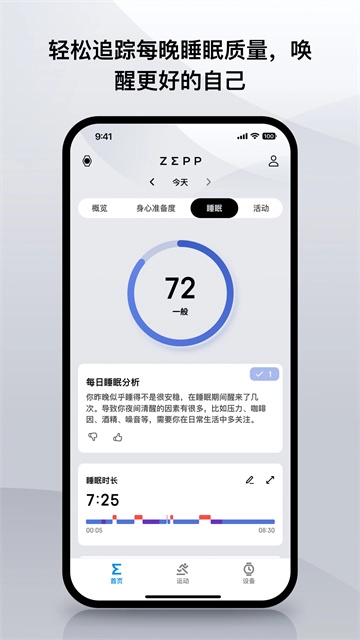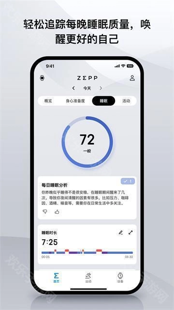 zepp,Zepp作为一款专业化个人数字化健康管理应用,通过连接Amazfit、Zepp品牌智能穿戴设备,实现心率、血氧、睡眠等10+项生理指标实时监测与无缝集成,当与Zepp装置配套使用时可自动识别跑步、游泳等运动状态并记录轨迹,整合AI健康评估模型能智能识别异常趋势(如睡眠呼吸暂停风险提示)并生成个性化建议,支持数据同步至iOS/Android设备及微信运动、支付宝平台,还具备离线同步功能(断网状态下数据记录遗漏率<1%)、表盘更换、通知管理等配置,用户可通过“亲友”功能扫码添加好友,整体操作简单易上手,新用户5分钟内即可完成设备配对与基础功能设置,为用户打造从数据采集、智能分析到社交互动的全链路健康管理体验。