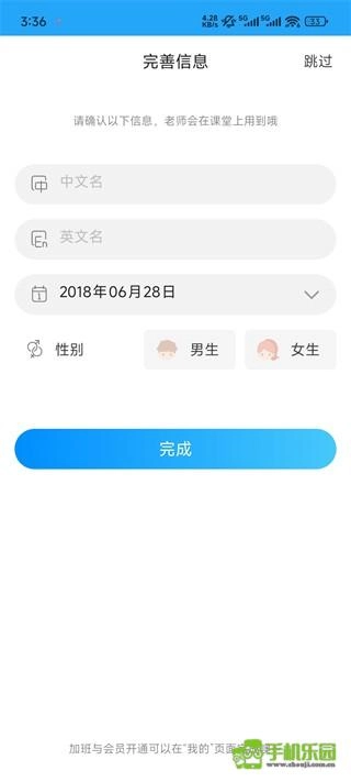 1、新用户初次登录,需要填写个人信息