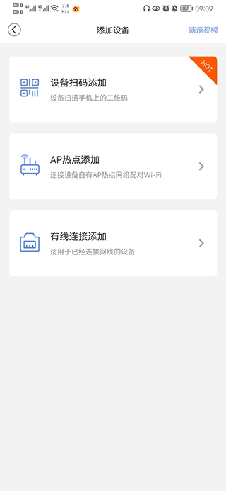 4、多种设备添加方式,扫码、热点、手动输入都行,新设备接入不卡壳
