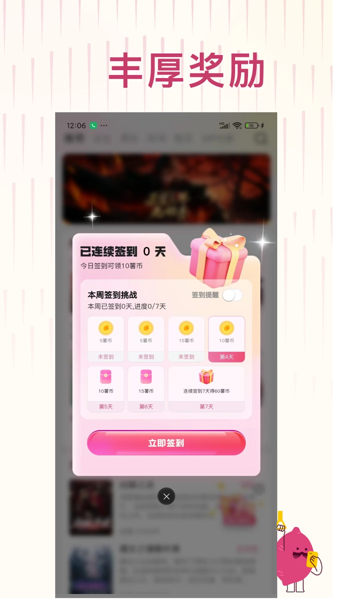 - 设有薯币福利机制,每天签到即可获取薯币,薯币可用于解锁付费章节、兑换阅读时长,无需强制充值也能阅读付费内容。