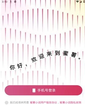 1、在打开蜜薯小说后,需使用手机号进行注册或登录。