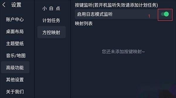 3、开启日志监听模式,桌面设置-高级设置-方控映射-图一开关打开