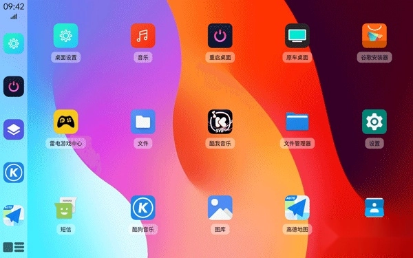 该应用支持多种主题和壁纸自定义手机桌面、本地及网络音乐播放、高德地图和百度地图两种导航模式选择、蓝牙电话和手机互联拨接电话、按名称类型颜色等分类整理应用程序。