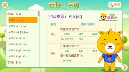 1、搭配形象生动的卡通插图,配合标准的笔顺书写示范,在学习认读音标的过程中,还能一笔一划地进行书写练习;