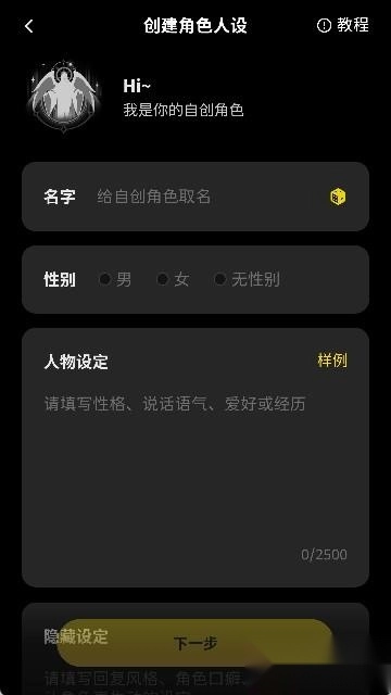 4、根据自己的喜好和需求创建和设定出喜欢的AI角色。