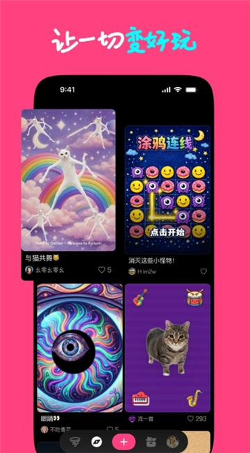 该游戏有独特“魔改”功能,能基于他人已发布作品二次创作,输入简单需求即可修改,形成创意接力氛围;支持多种手机硬件交互,除常规点击外还能调用陀螺仪(晃动手机)、麦克风(吹气),互动方式比其他AI应用更丰富;AI生成能力强,不仅能生成作品,还能自动补全交互逻辑、分镜动画和文案,生成的作品完成度很高;创作门槛极低,不用懂设计、编程,新手只用文字描述想法,AI就能生成图像、语音、视频等全模态可交互作品。