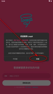 1、在手机上打开Loopit中文版,并同意软件的政策。