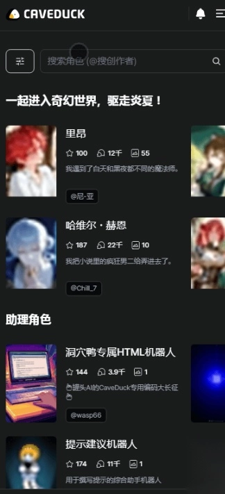 Caveduck安卓版是一款体验感超棒的AI角色聊天创作应用,长期记忆系统,让陪伴更具温度,交流越深入越显贴心;角色创建功能支持高度自定义,可视化界面操作便捷,用户还能通过发布角色获取收益!