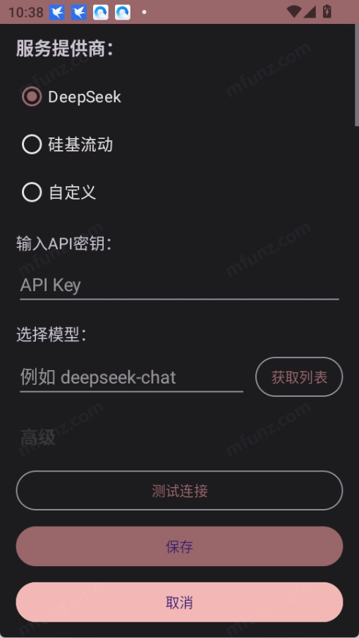 8、点击设置,可切换提供商和选择模型、测试连接等。