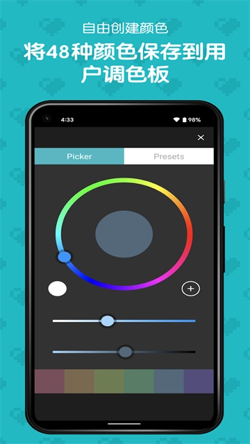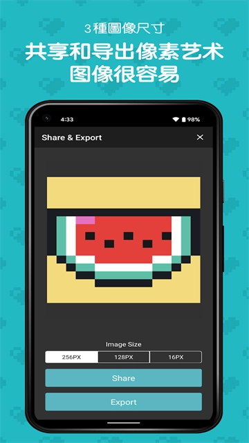 将喜欢的图像导入应用程序转换为像素艺术,可创建并在用户调色板中保存最多48种颜色,也可使用含96种颜色的预设调色板,还能从三种类型中选择输出尺寸并生成支持透明的PNG图片。