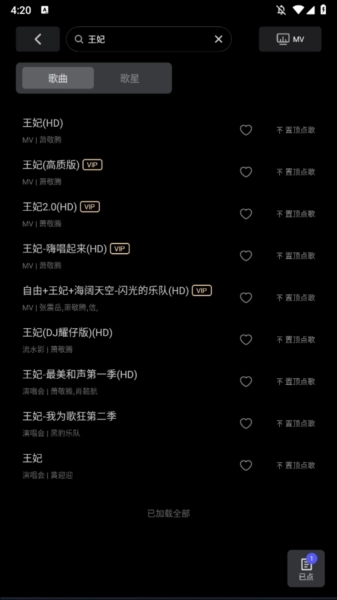 4、点歌后,点击右上角的【MV】图标。