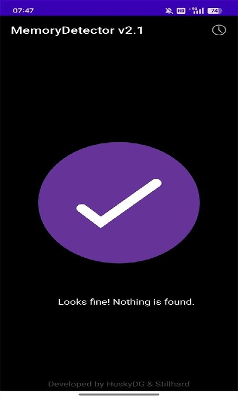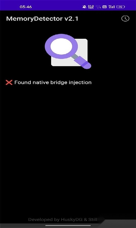 4、启动MemoryDetector应用,授予其存储权限,在首页点击“一键检测”按钮,待扫描结束后,将检测到的Root痕迹、Xposed框架等风险项目进行记录。