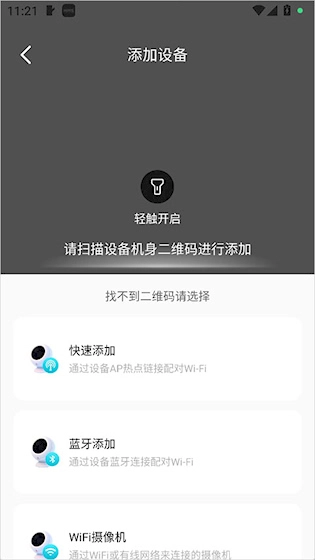 2、根据设备情况选择扫描二维码、WiFi或蓝牙方式进行添加。
