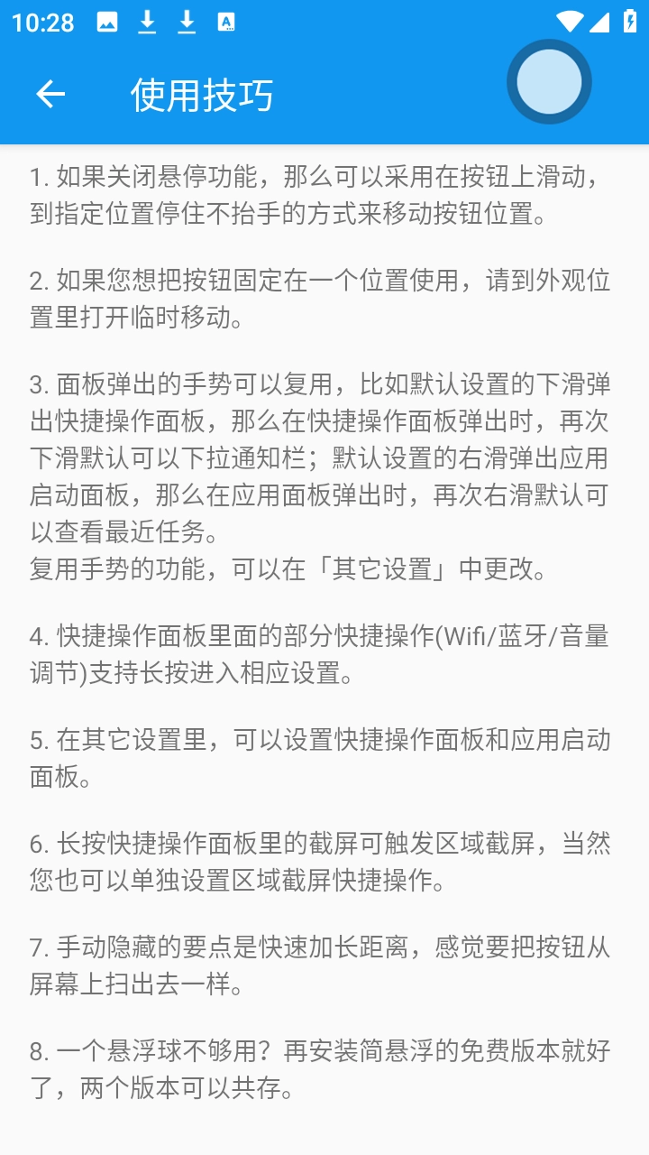 - 支持单击、双击、长按及四个方向滑动等多种手势操作,每个手势都可自定义功能,例如双击悬浮球实现锁屏、右滑切换至上一个应用,贴合车主操作习惯。