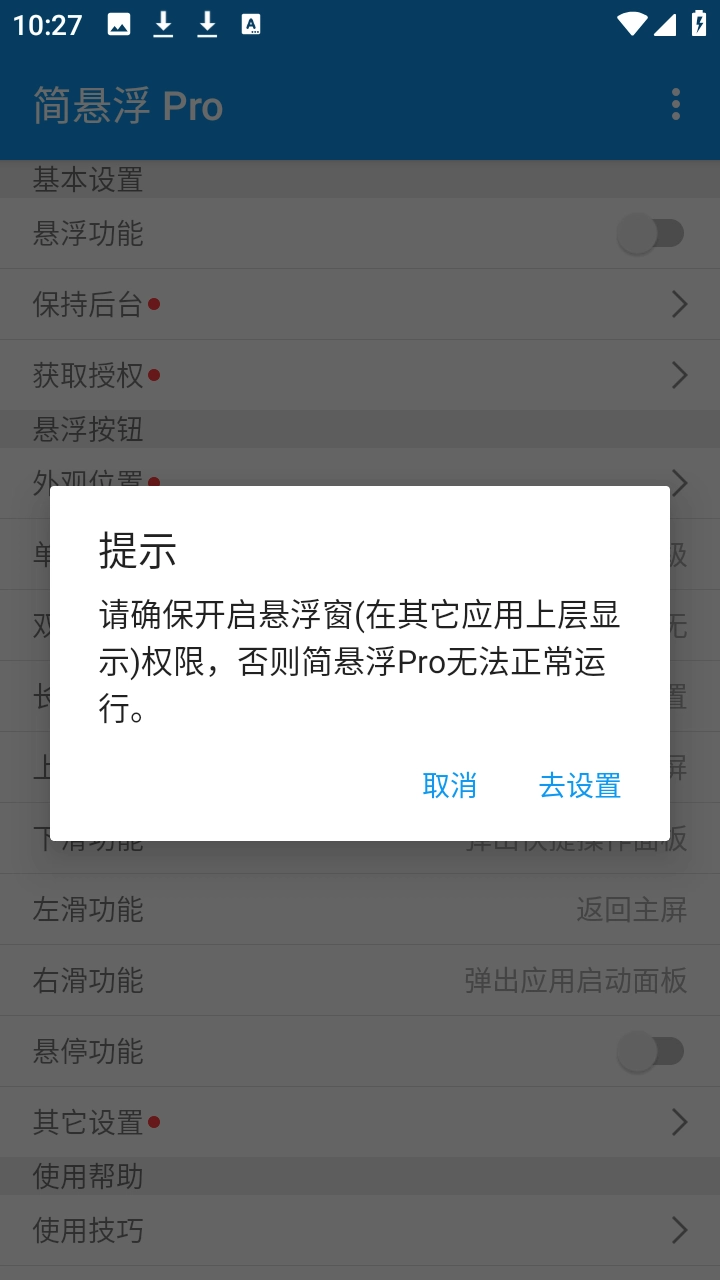 5、第一次用的时候先去设置里开启悬浮权限,不然小窗口出不来,不同手机路径略有差别,按提示走就行。
