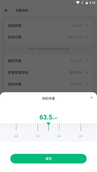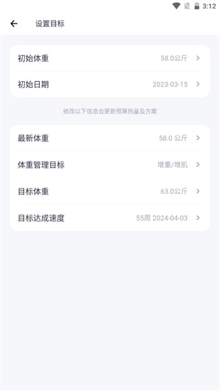 3、根据自身的需求改变目标体重等信息;