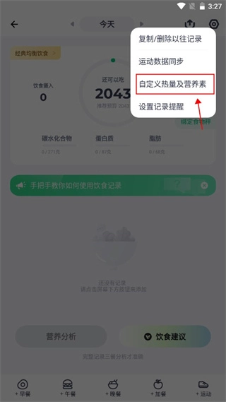 3、点击自定义预算热量功能;