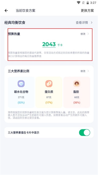 4、点击预算热量中的修改功能;