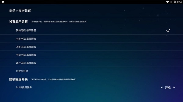4、投屏播放功能,支持手机、平板等设备投屏到电视,同步播放移动设备里的视频内容