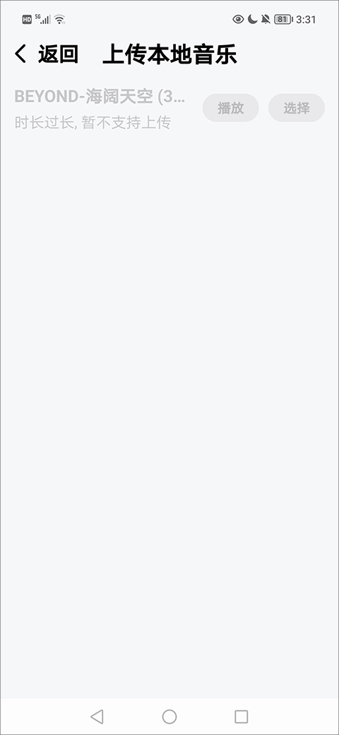 3、然后在经过扫描后,软件就会在上传本地音乐界面显示可以和不可以上传的本地音乐。