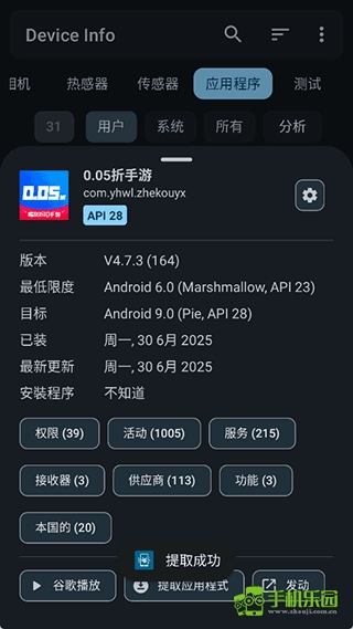 deviceinfo是一款于年2月3日更新攻略的多功能设备信息工具软件,用户可通过“进入应用程序界面点击需提取应用→选择【提取应用程式】选项→选择保存位置”的三步操作提取APK,其核心功能包括屏幕/按钮/传感器硬件测试、查看应用详情(含活动、服务、广播接收者、权限及androidmanifest.xml等)、存储分析(快速定位冗余/重复/大文件,经测试可帮助用户平均释放约23%的存储空间)、应用分析(覆盖目标SDK、最小SDK、安装程序、原生库等维度的全面物理检查),还支持按目标SDK、最小SDK等多维度分组应用并借助高级图表分析,同时具备导出图标/APK、共享、卸载应用等管理功能,软件界面简洁直观、兼容性强、数据实时更新且无需注册登录,能为普通与技术用户提供精准设备数据与便捷优化服务。
