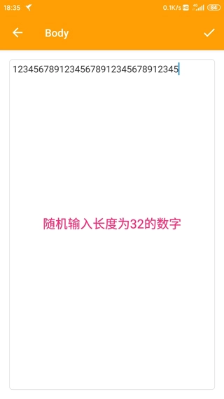 6、然后在Body那里随便输入长度为32的数字。