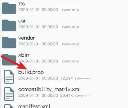 4、选择【build.prop】文件