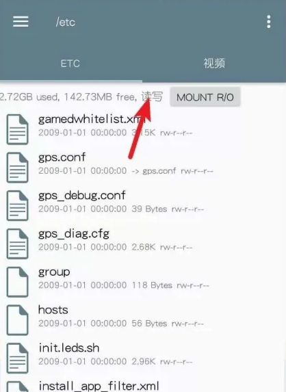 -首次打开授予 ROOT 权限,点击挂载为读写模式,才能修改系统文件。