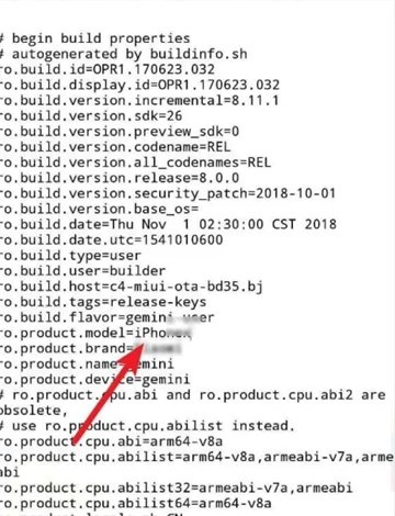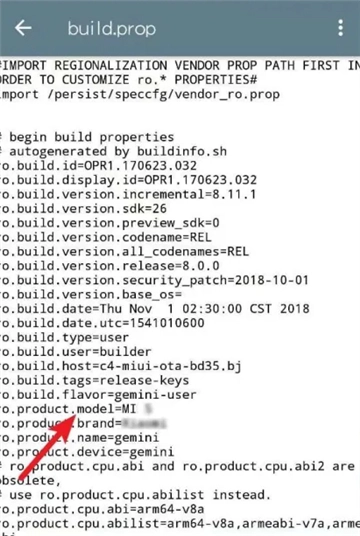 6、找到【ro.product.model=】这行