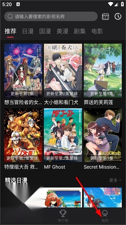 1.打开喵次元动漫App,进入主页面后,点击底部导航栏中的“我的”选项