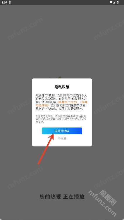 1、打开笔盒box软件点击同意并继续进入