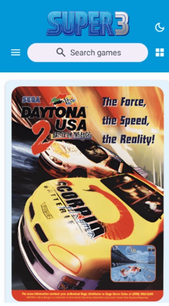 SUPER3模拟器是一款专注世嘉Model3街机硬件环境还原的安卓模拟器,支持从原生分辨率到8倍超分的多档画质调节,通过“Pick games folder”选择存放Model3 ZIP游戏文件的文件夹(若遇隐私限制需更换路径),完成设置后进入主界面显示已识别游戏列表,部分游戏因缺失“XXX.zip”文件需补充才能运行,其极简界面支持侧边栏导航、触屏自定义按键(可调整位置、大小、透明度以降低误触率)与蓝牙手柄适配,还提供随时存档读档功能,且经引擎优化后普通安卓手机也能稳定运行《Daytona USA 2-Battle on the Edge》等经典3D街机作品,更新后优化了渲染引擎并修复闪退问题,帮助用户重温接近原版街机的怀旧体验。