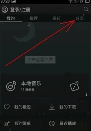 1、打开天天动听2013旧版本软件,点击分类。