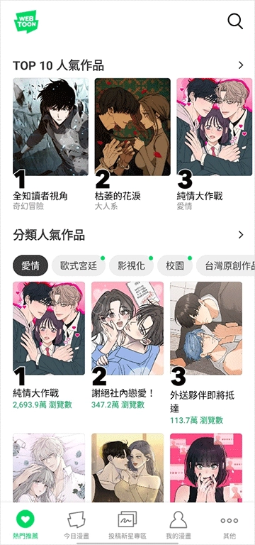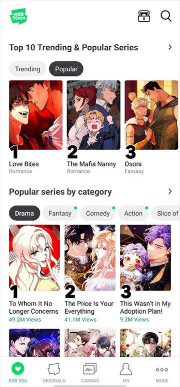 探索全球最大的网络漫画库,这里涵盖了动作、爱情、惊悚等各种各样的题材。