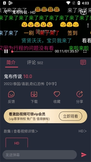观看过程中,用户可开启弹幕互动、视频、收藏喜爱内容以及分享给好友。