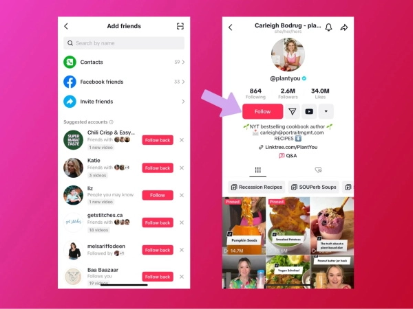 添加好友并关注TikTok上的账户,让他们的视频出现在你的关注信息流中。