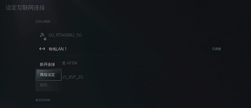 PS5:设定互联网连接->选择WiFi或者有线LAN连接 - 高级设定