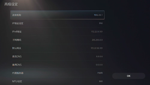PS5:设置成UU提供的ip、dns后点击OK即可