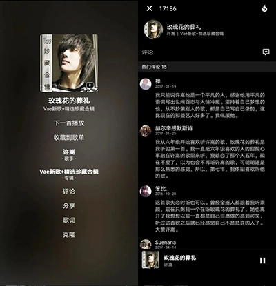 5、搜索结果里的歌曲同样来自网易云音乐和QQ音乐,这些音乐都支持免费播放,不需要开通会员付费。不仅如此,用户还能和在原平台一样,用已登录的账号进行评论、收藏、分享,而且这些功能也都是免费的!