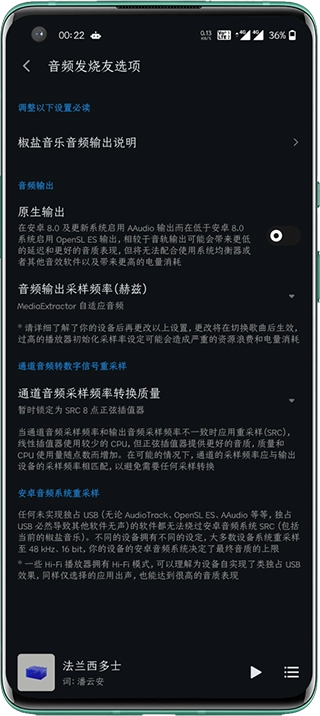 5、此外,在高级设置中还有一项专为音频发烧友准备的选项——“音频发烧友设置”,包含音频输出方式、采样频率等多项参数调节,满足专业用户的需求。