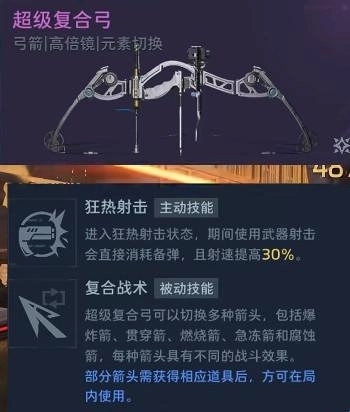 黄沙风暴的机制别具一格,其弹道数量会随弹夹剩余子弹的减少而增加。当弹夹里还剩三发及以下子弹时,每一次射击都能产生五个弹道,它还可以和副武器复合弓搭配使用。